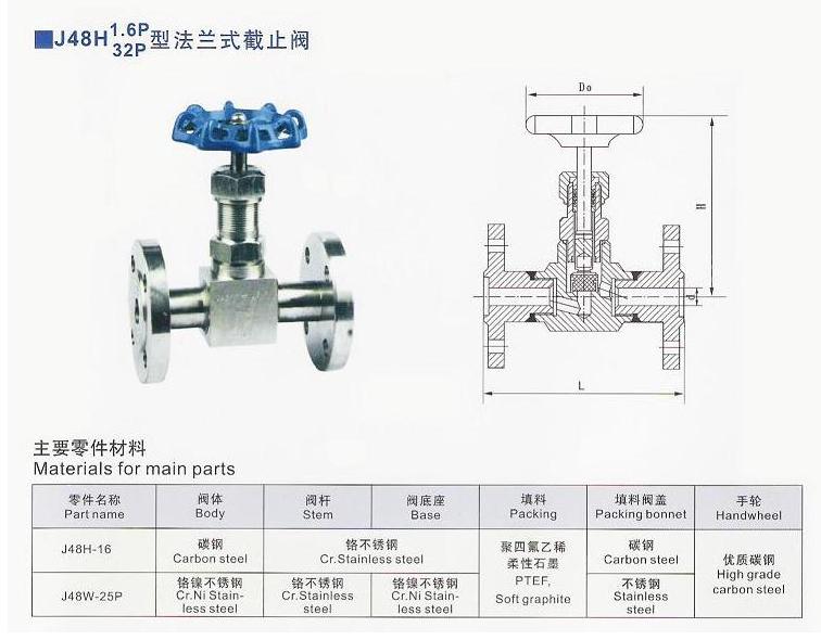 J48H/W法蘭式截止閥(針型閥)的詳細資料: