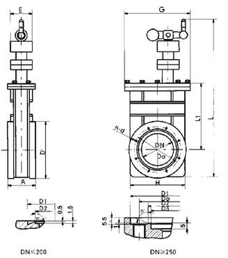 CC型-超高真空插板閥主要零件材料 CC型-超高真空插板閥外形及連接尺寸mm |