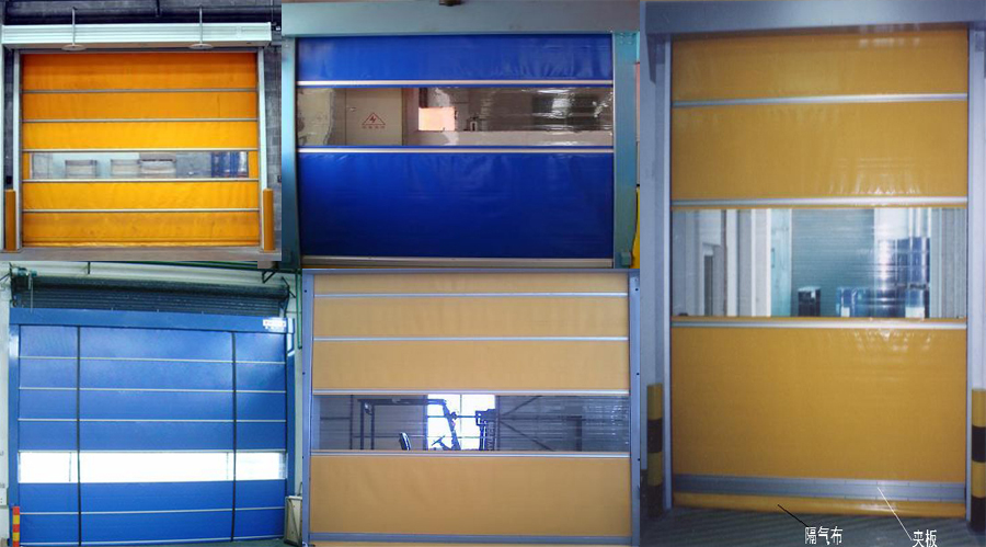 快速門又稱為、快速卷簾門、高速門、高速卷簾門,是通過PLC、變頻器、編碼器控制、門簾(PVC材質)快速升降,是專為物料的快速流動(以縮短進出時間)而設計的。  快速門是以多關節活動的門片串聯在一起,在固定的滑道內,以門上方卷軸為中心轉動上下的門,安全配置和密封性能尤為重要。